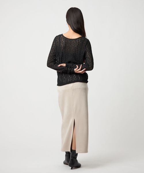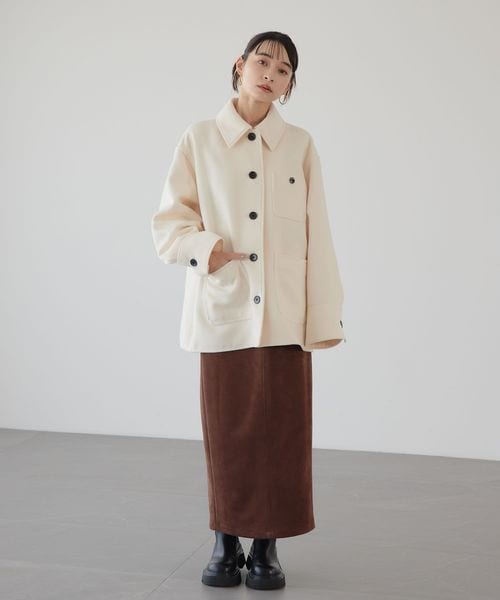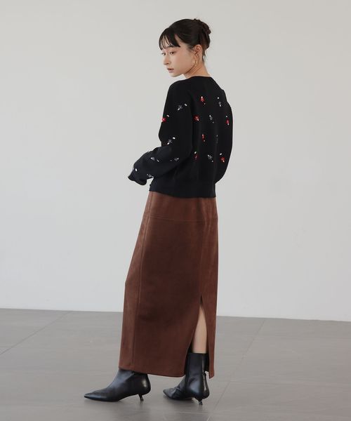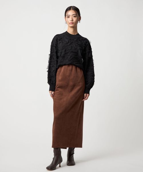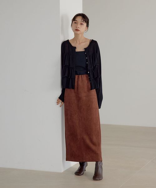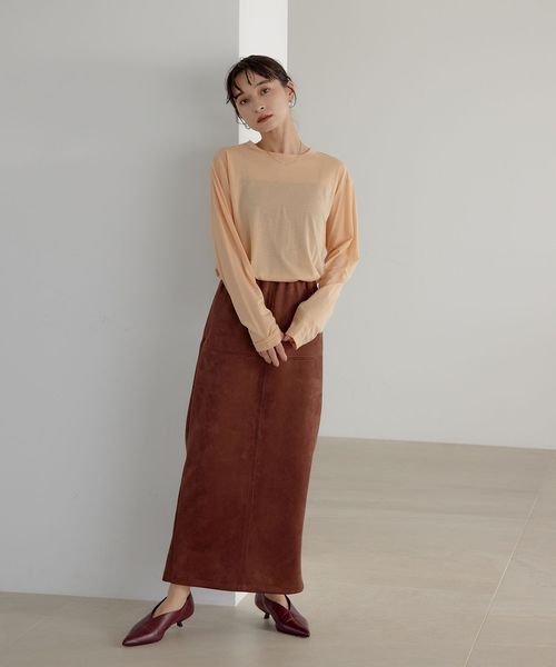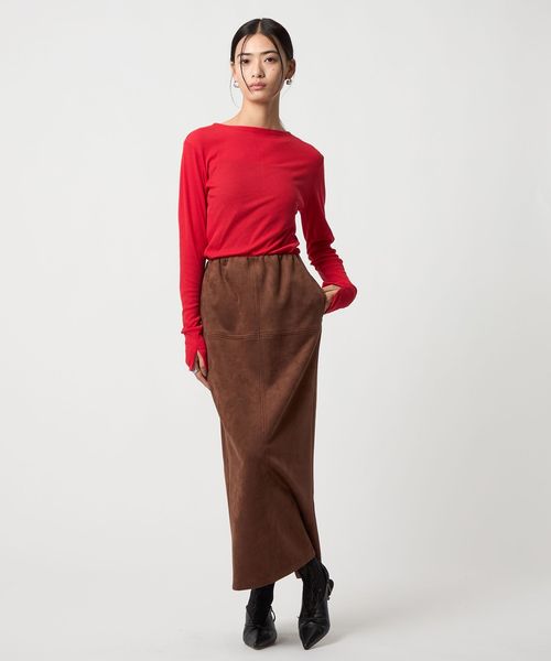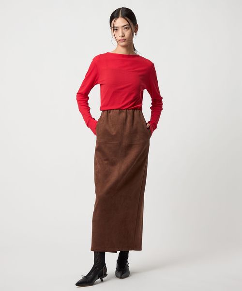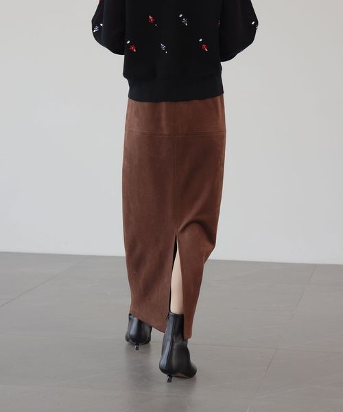 さまざまなスタイリングで活躍するスウェードライクのナロースカート