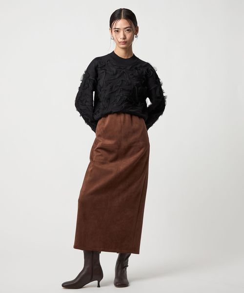 <EMMEL REFINES>EM スウェードライク ステッチ Iラインスカート