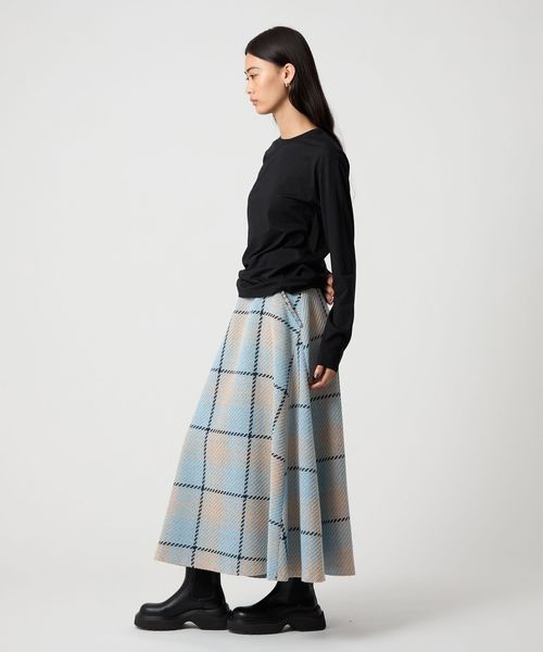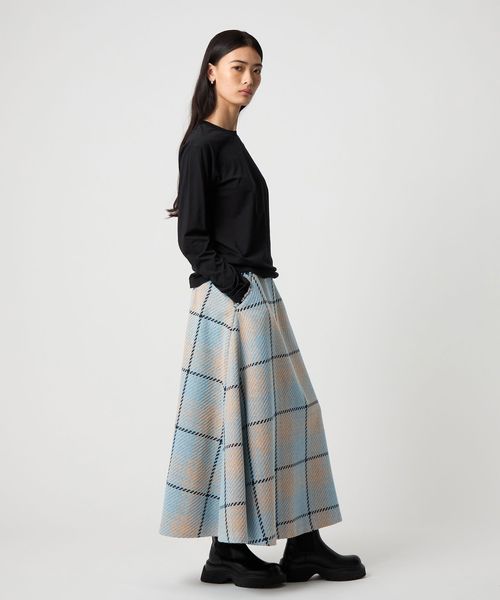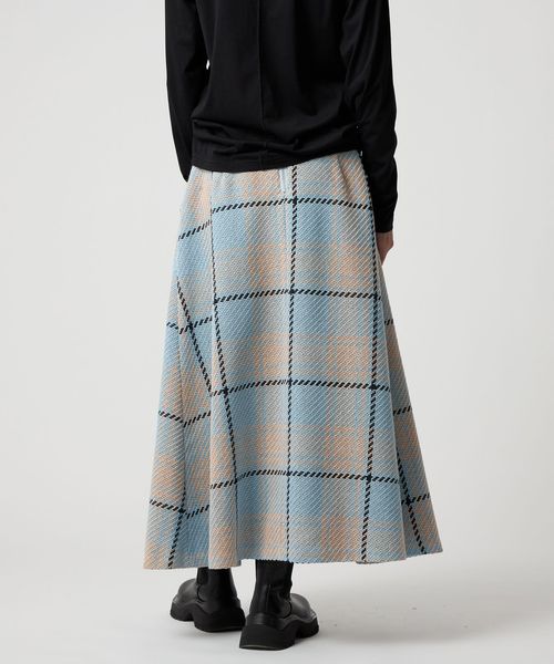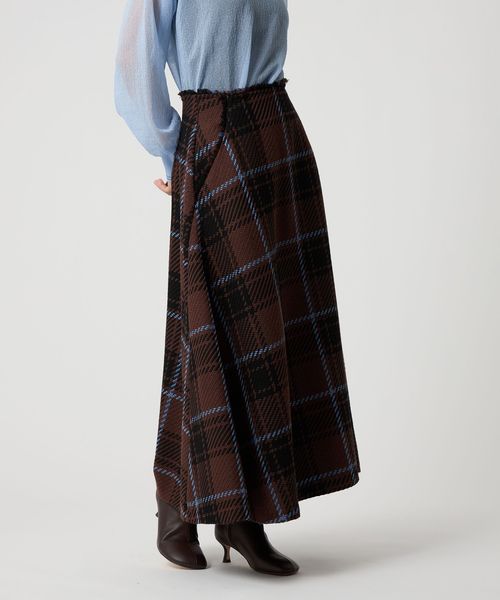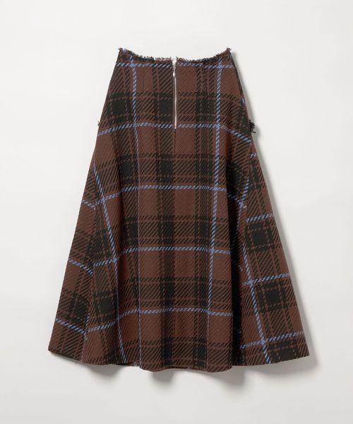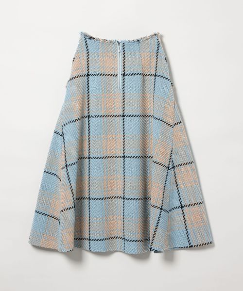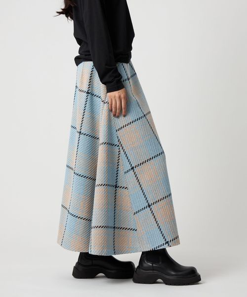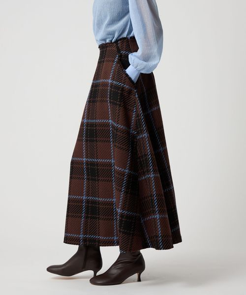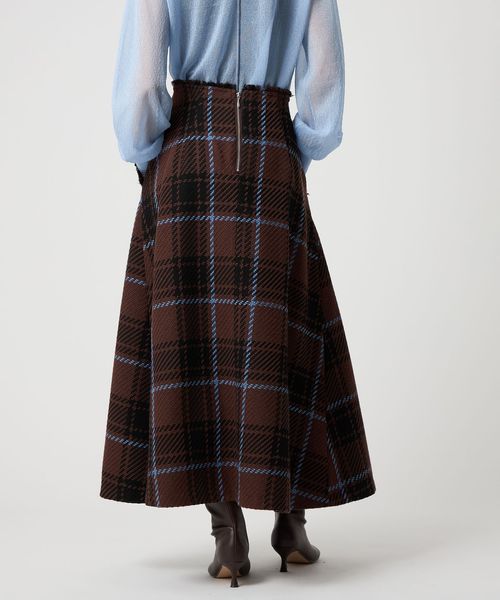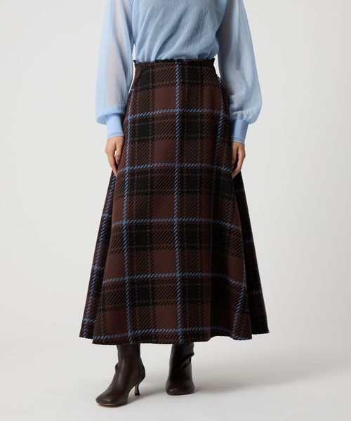 ツイード調の大きめチェック柄が映えるフレアスカート。