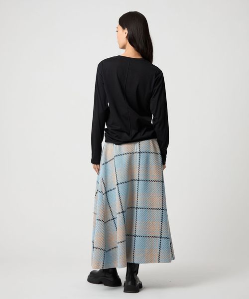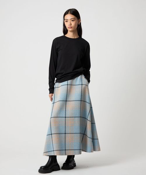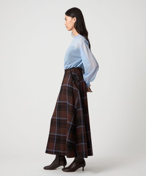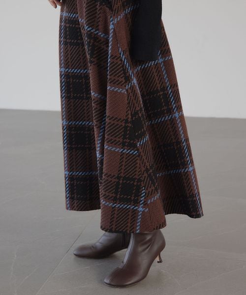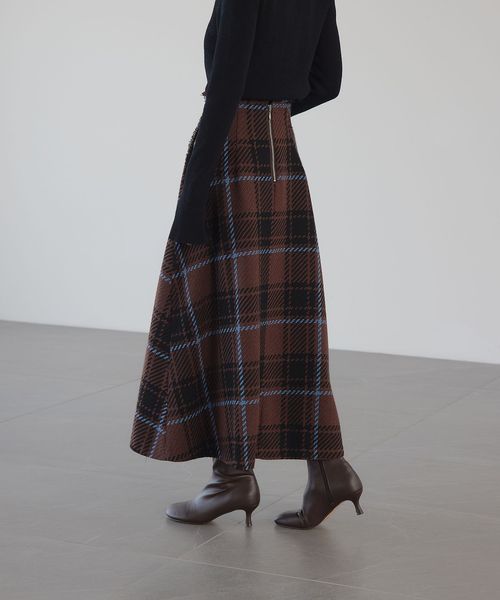 大柄のチェックが着こなしに映えるフレアスカート