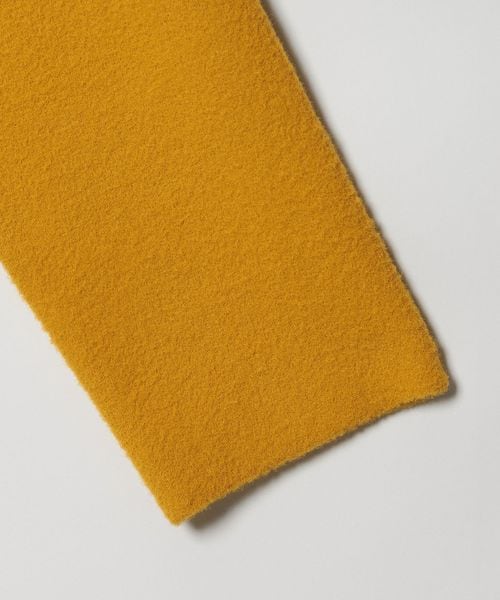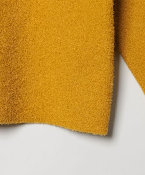 短い毛足のフェザーヤーンで接結編地にしているので、ふわっとした風合いかつ、もちっとした厚みのある肉感です。
