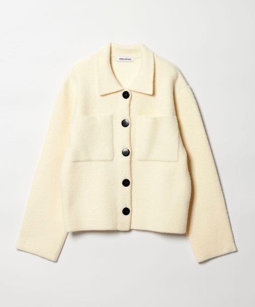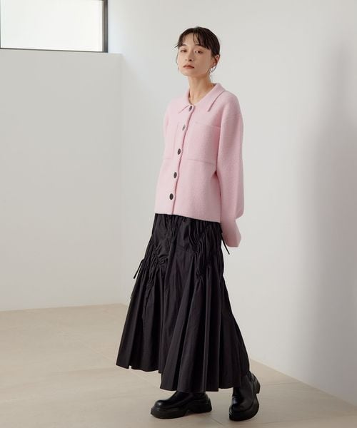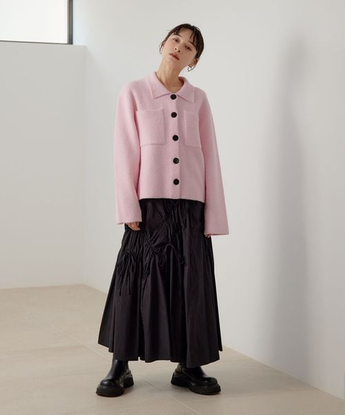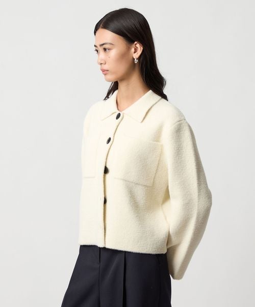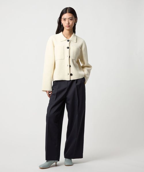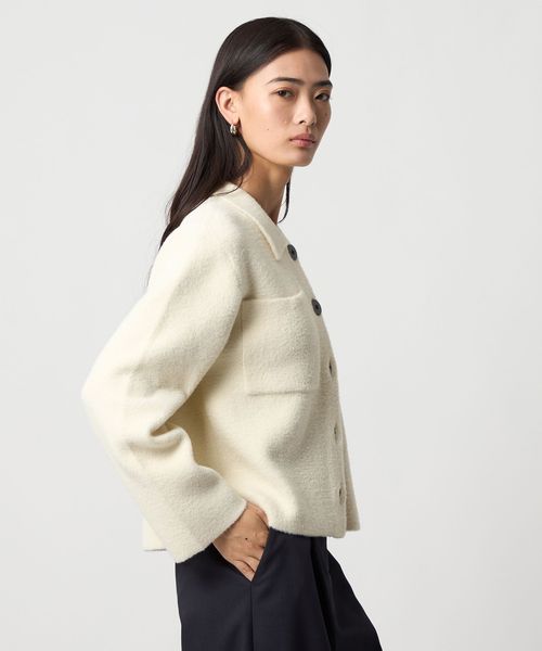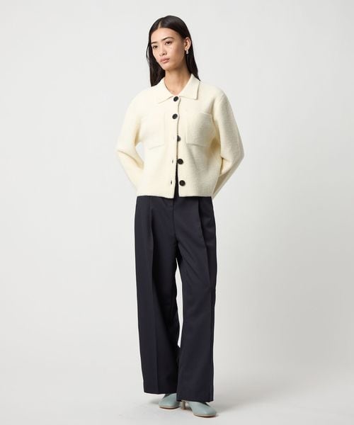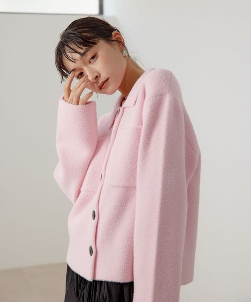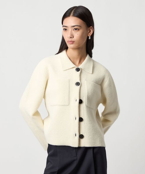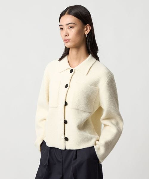 カーディガンとジャケットの中間感覚で着用いただける襟付きのカーディガン。