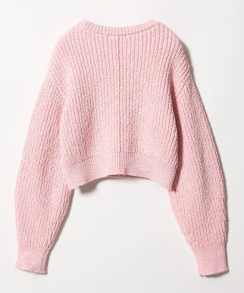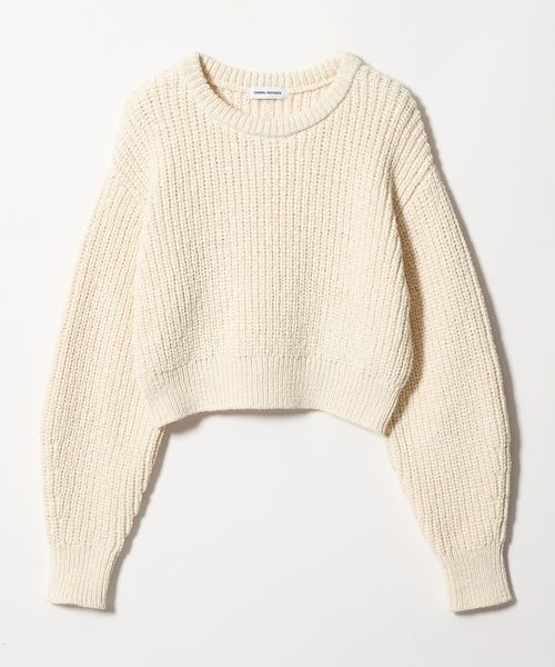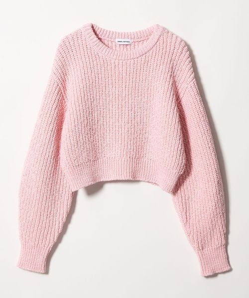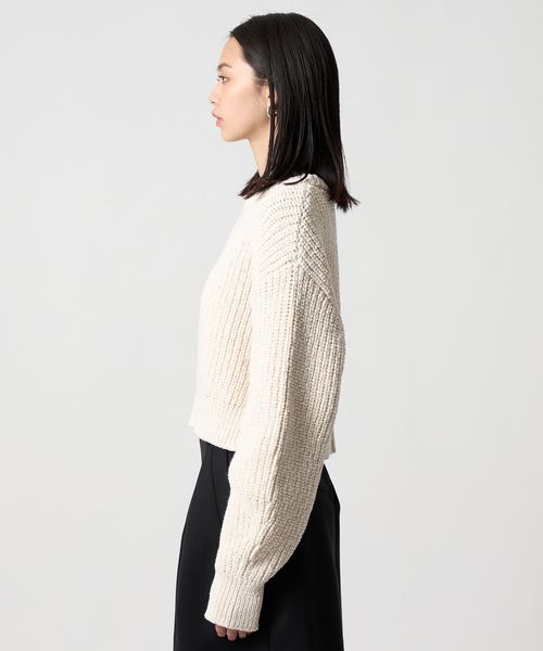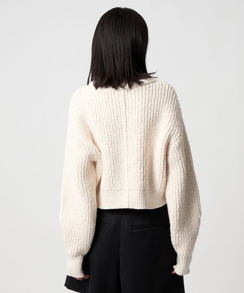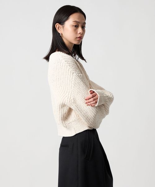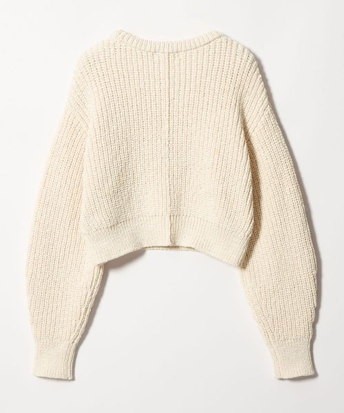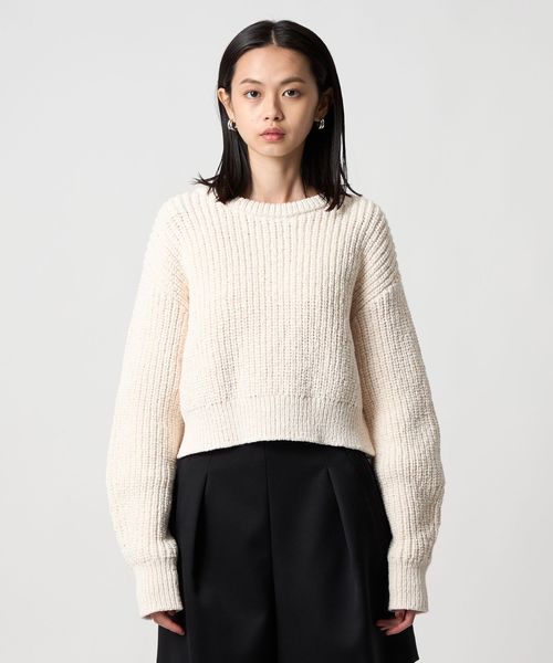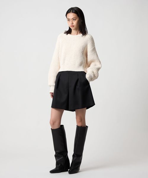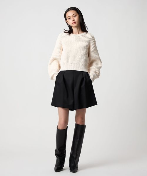ショート丈×ボリューム袖がポイントの畦編みニット