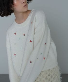 ふんわりした編地とビジューが存在感たっぷりなニット