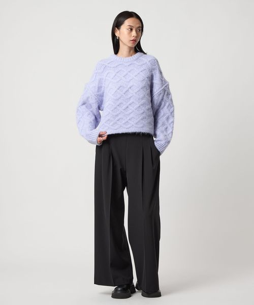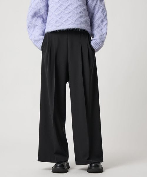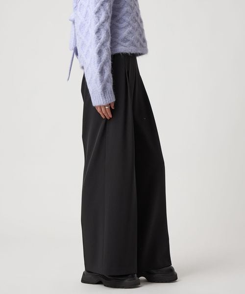 ベルトレスなハイウエストのデザインがすっきりとはいていただけるワイドパンツ。