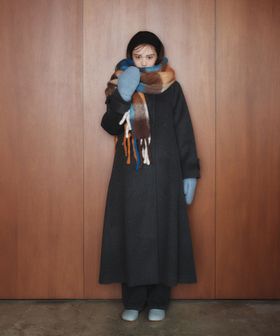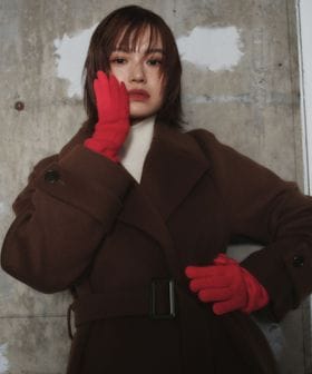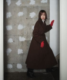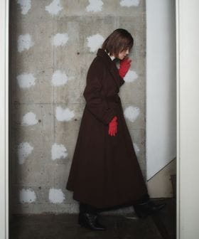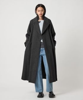 ドラマティックで上品な印象のEMMEL REFINES定番のベルト付きフレアコート。