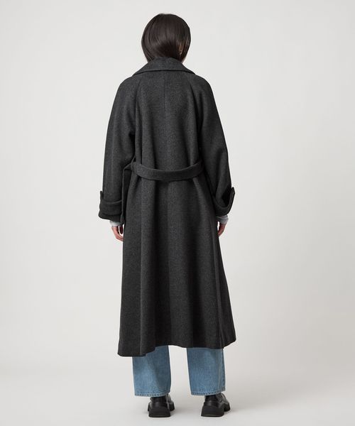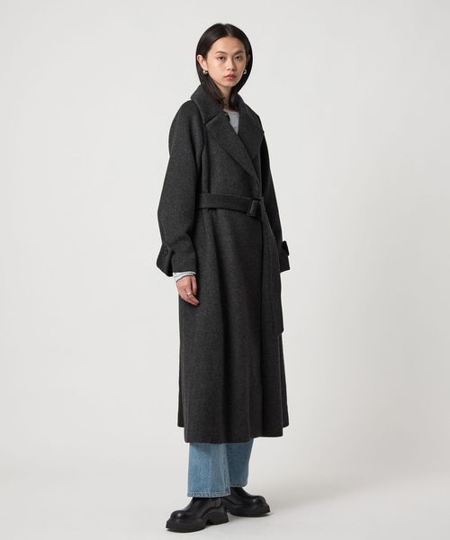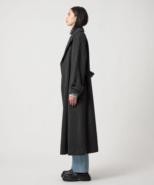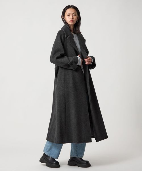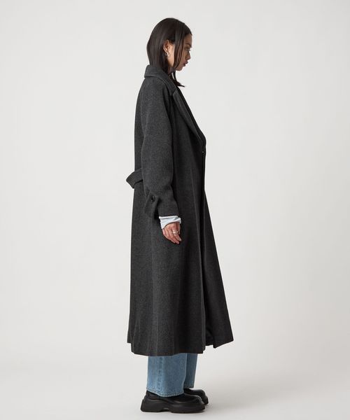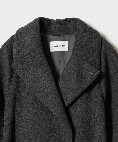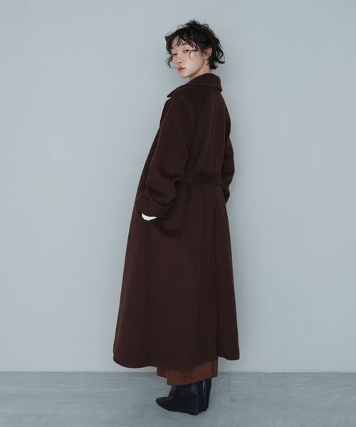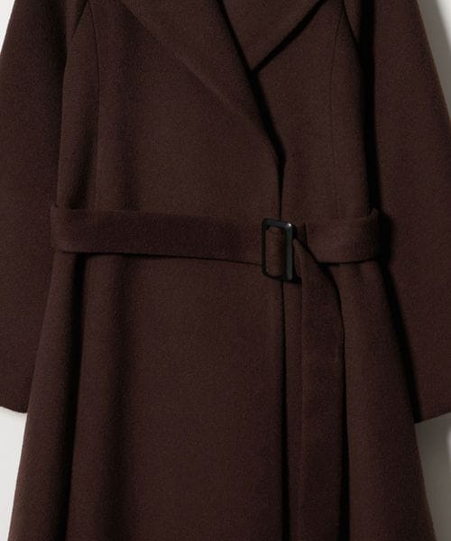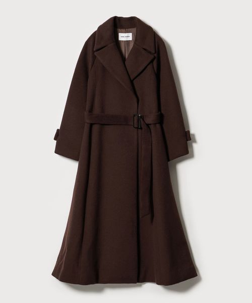 ドラマティックで上品な印象のEMMEL REFINES定番のベルト付きフレアコート。