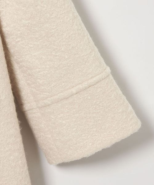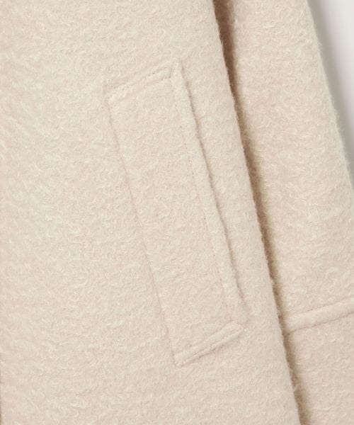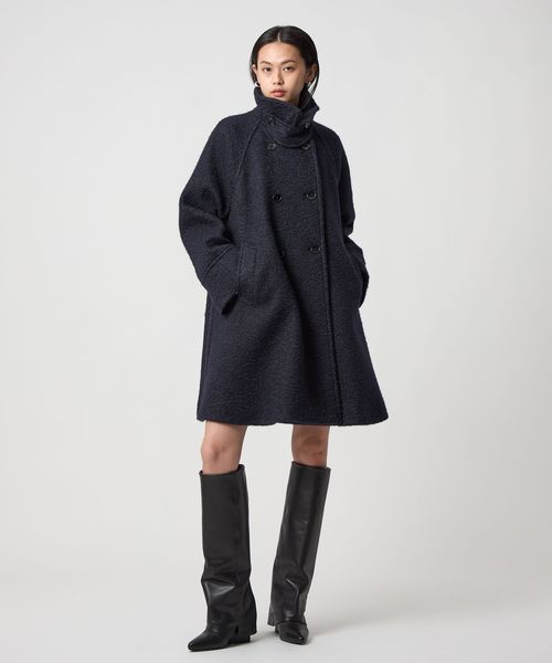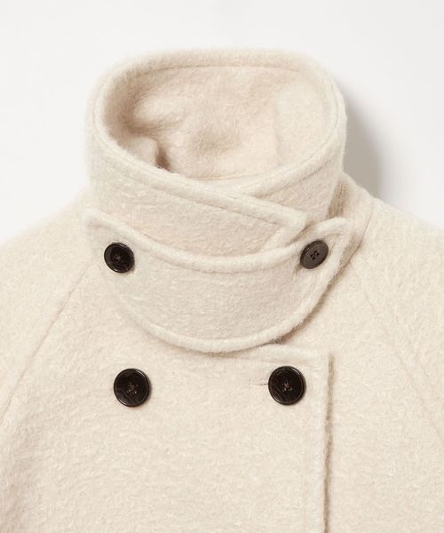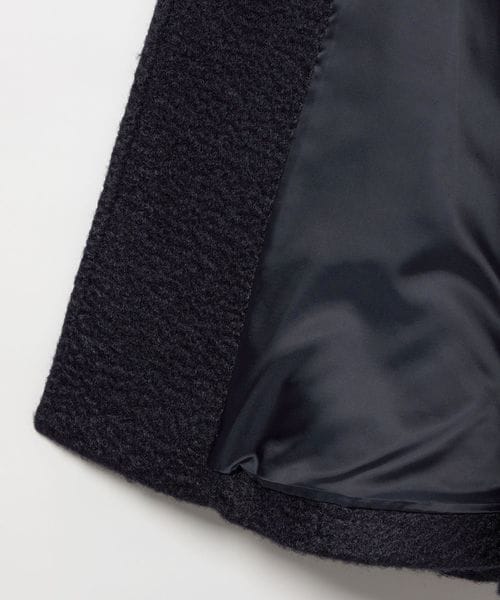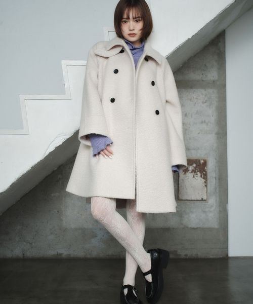 カーリーな素材感に、フロントのダブルボタンのデザインが華やかな印象。