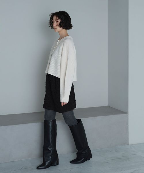 ふくらみのある片畦編みでコンサバなイメージにならず、カジュアルに着られるようにしています。