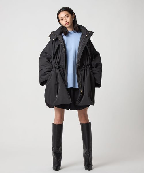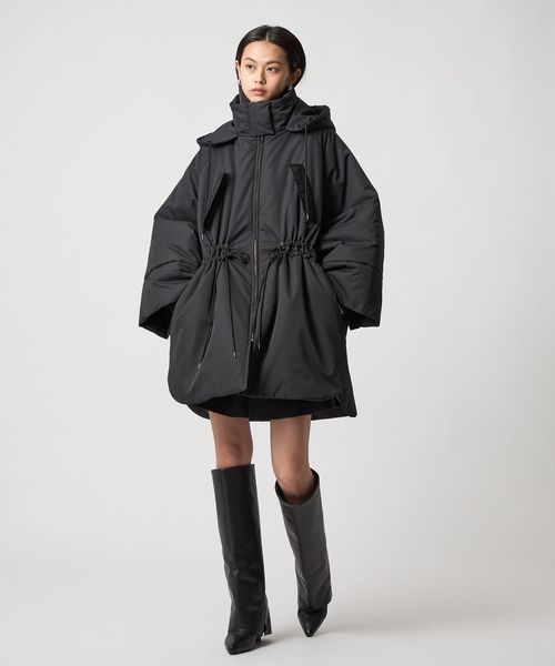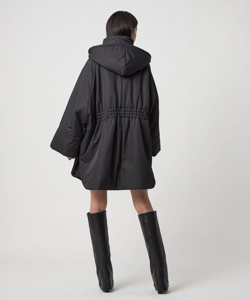 クリーンな印象であたたかく着られるポンチョ型中わたコート