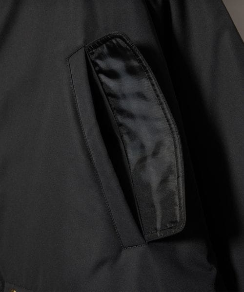 ゆったりしたサイズ感なので、着丈はミドル丈に、裾は脇をラウンドにして重く見えないバランスに仕上げています。