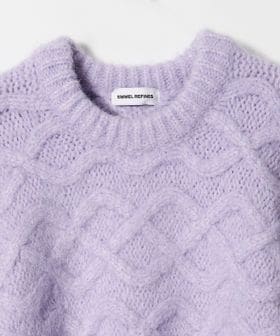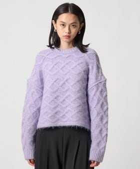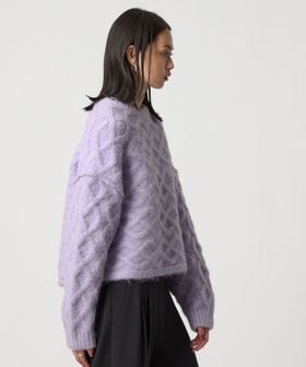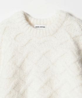 ローゲージで大胆なケーブル柄をポイントにしたニットプルオーバー。