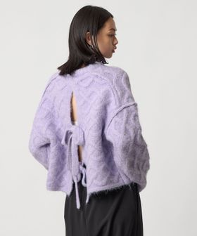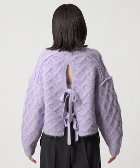 大胆なケーブル編み&バックスタイルのリボンがキャッチーなニットプルオーバー