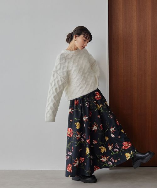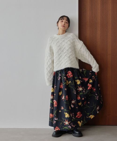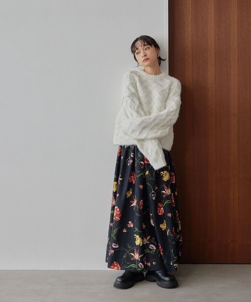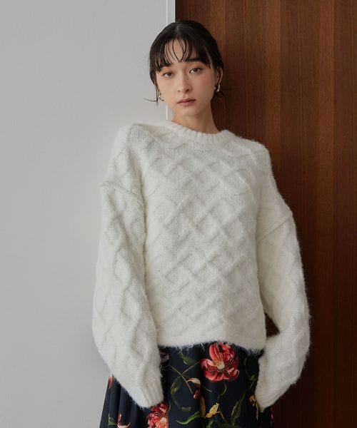 ローゲージで大胆なケーブル柄をポイントにしたニットプルオーバー。