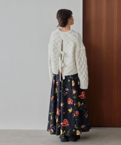 <EMMEL REFINES>EM バックリボン ケーブルニット プルオーバー
