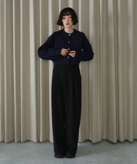 スウェットライクな肉感の編地で作るでポコッとしたフォルムのミニカーディガン。華やかなビジューボタンがポイント。
