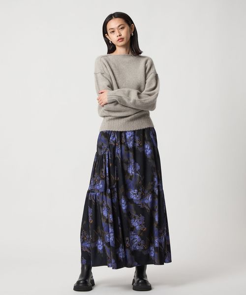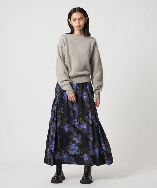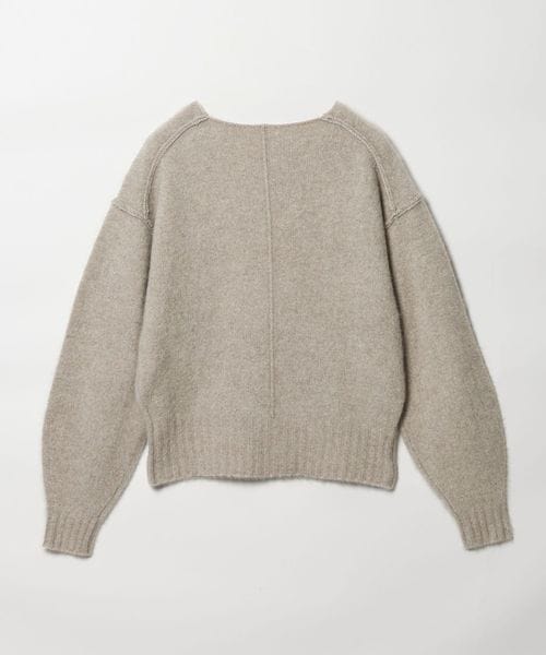 身頃はゆったりとしたシルエットに、リブ編みの裾できゅっと止まるコンパクトな着丈でバランスよく着ていただけます。