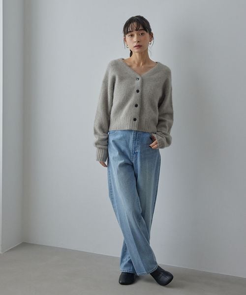 肌触りのよいふわふわの毛足が魅力のフォックスブレンドニットカーディガン。