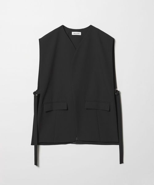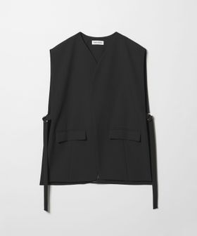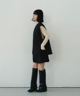 程よい肉感とハリのあるダブルクロスで作るボクシーシルエットがモードな印象のジレ。