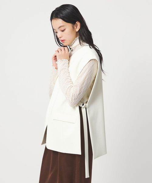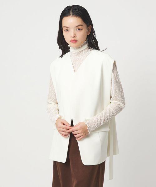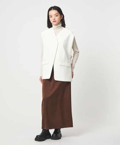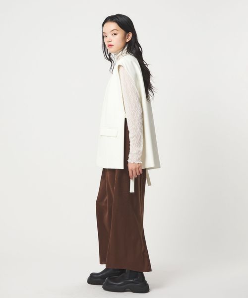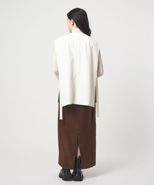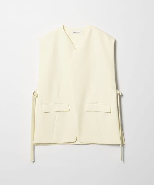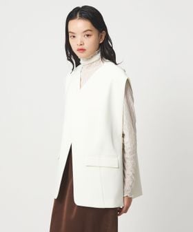 程よい肉感とハリのあるダブルクロスで作るボクシーシルエットがモードな印象のジレ。
