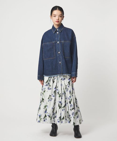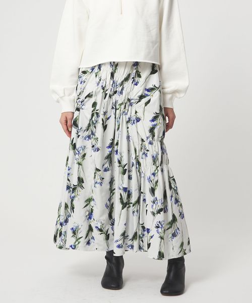 <EMMEL REFINES>EM フラワープリント シャーリング スカート