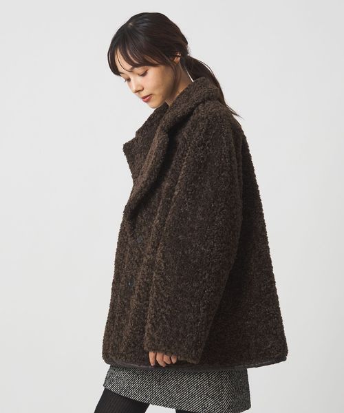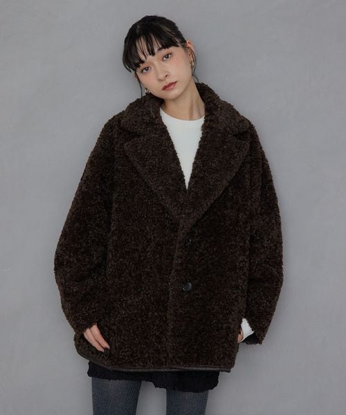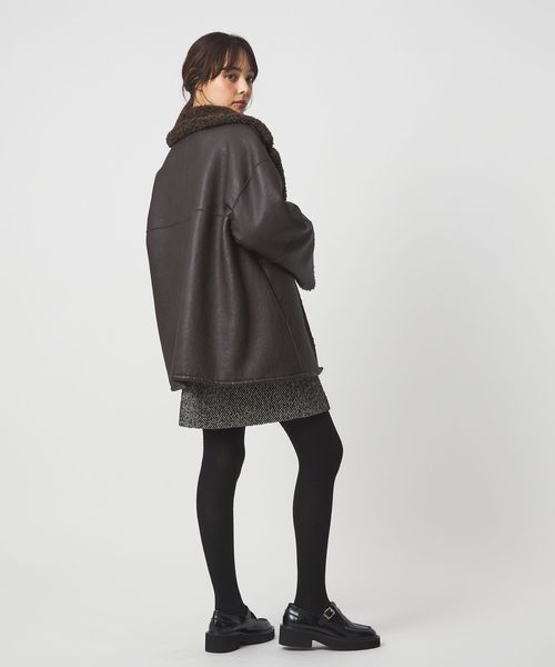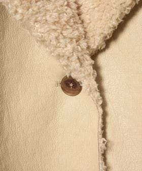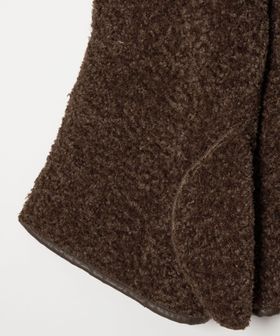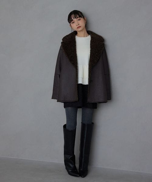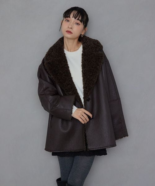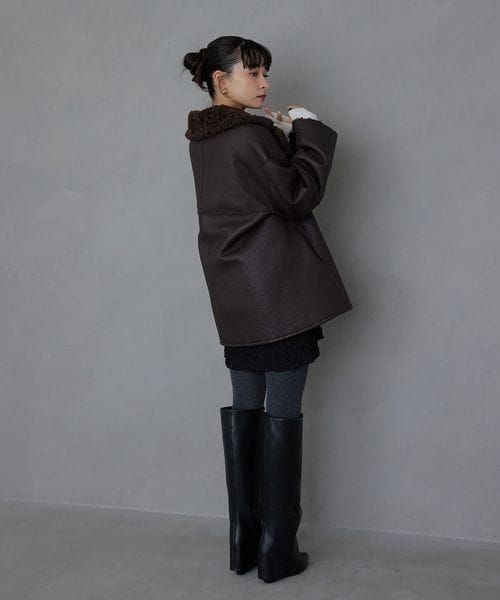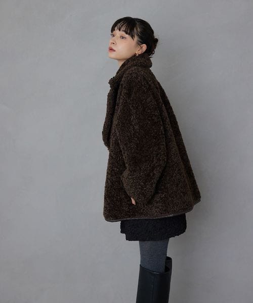 フェイクファー面は大きめのカールのものを使用し、カジュアル過ぎずフェミニンスタイルにも取り入れやすい印象に仕上げています。