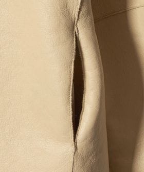 レザー調の面は程よいシボ感とマットな表面感でハードに見えすぎない印象に。