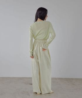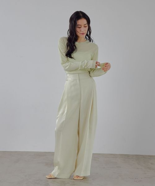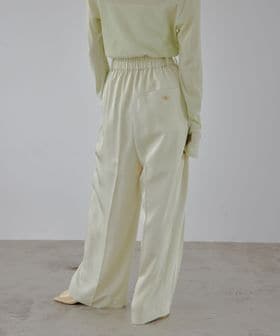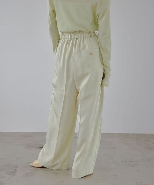 さりげないツヤ感とゆるいシルエットがフェミニンにはいていただけるスラックス