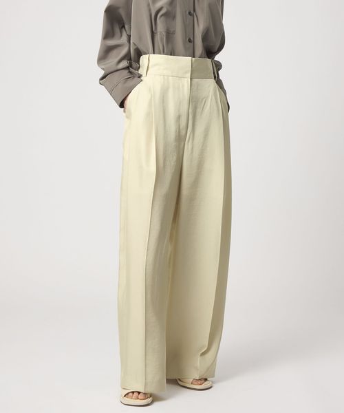 ハイウエストのゆるストレートシルエットがフェミニンにはいていただけるスラックス。