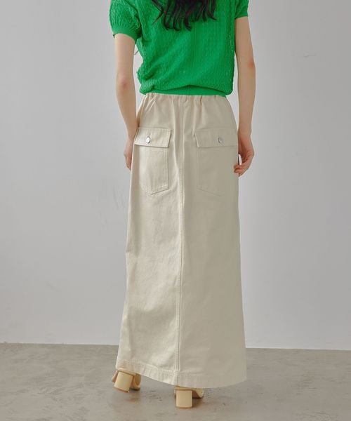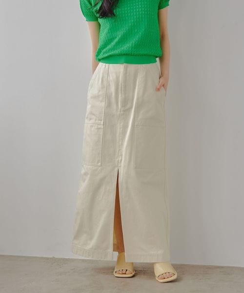 ベイカー風のデザインを効かせたカジュアルなIラインスカート。