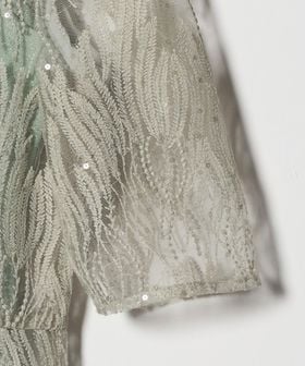 華やかさと透け感を楽しめるデザインで、高めのウエスト位置の切替えが美しいシルエットを演出してくれます。