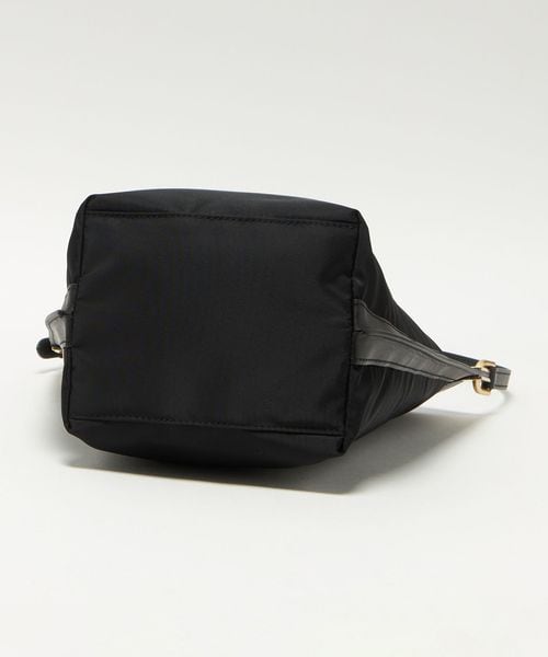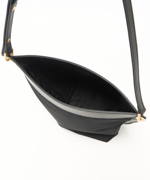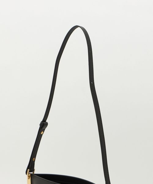 ゴールドカラーのギボシ留めがアクセントになったデザインで、ショルダーの長さを調節すればハンドバッグ、肩掛けやクロスボディとシーンによって持ち方を変えてお使いいただけます。
