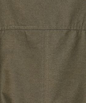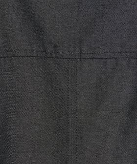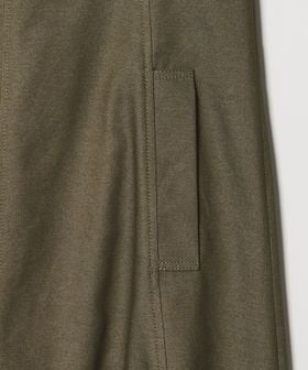 肩ひものサテン使いや、太番手のステッチ、大きめの箱ポケットなど、細部にデザインを効かせたジャンパースカート。