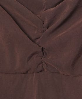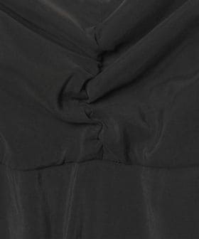胸元のギャザーディティールとトップス部分の裾が軽やかに揺れるフェミニンなデザイン。