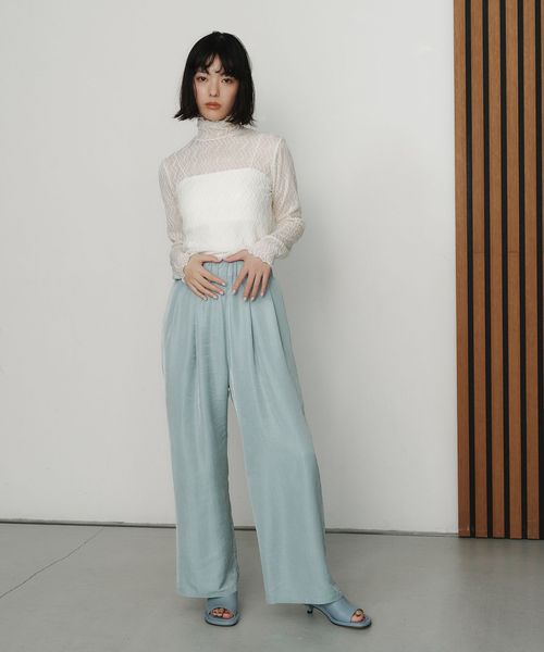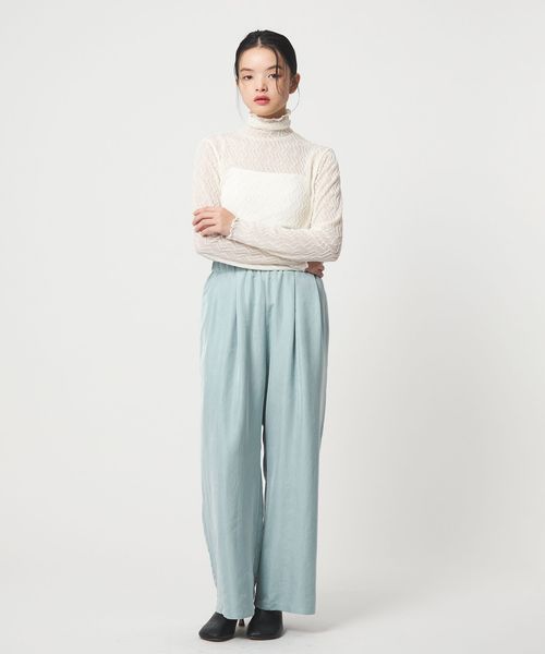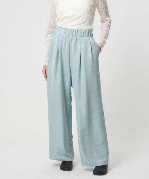 抑えめのツヤがデイリーに着まわしやすいサテンパンツ。