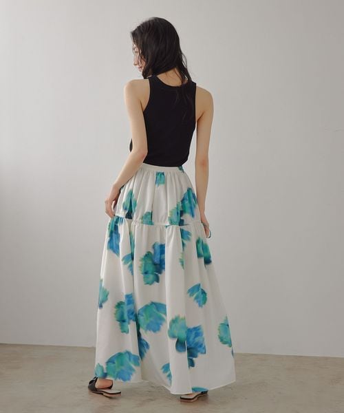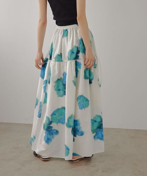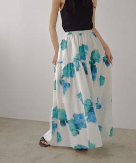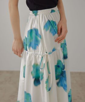 鮮やかなビッグフラワープリントが映えるギャザーボリュームスカート。