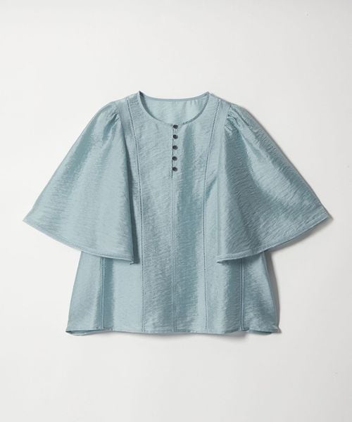 小さめに設定した肩からふわっと広がるフレアスリーブが魅力のブラウス。