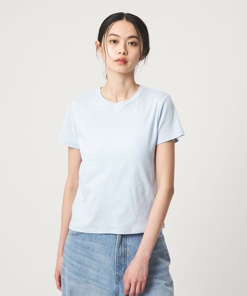 女性らしく着られるコンパクトなサイズ感とカラーがポイントのチビTシャツ。