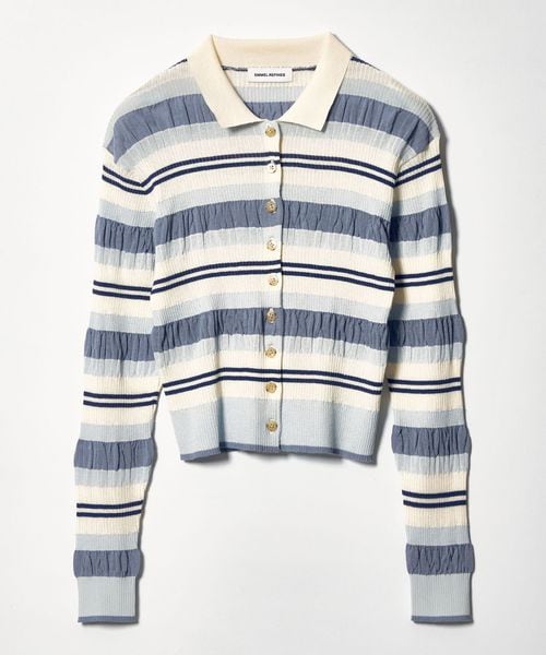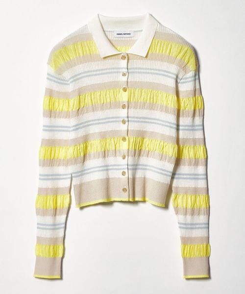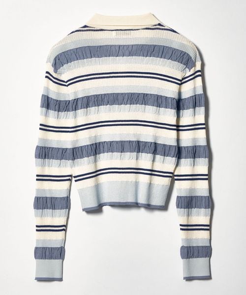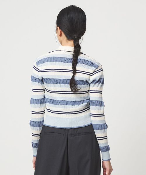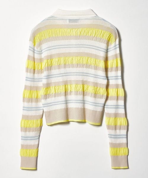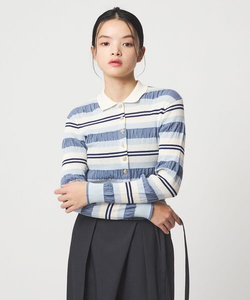 春らしいマルチボーダーが目をひく襟付きニット