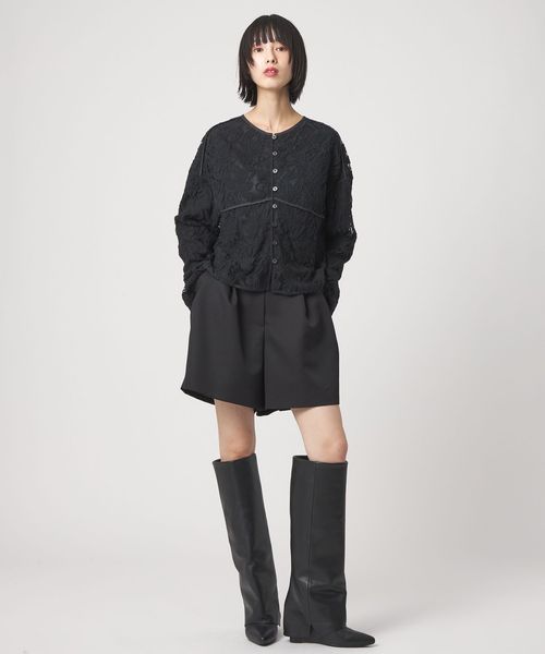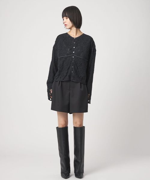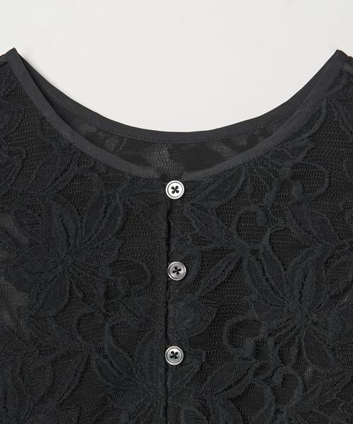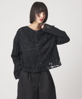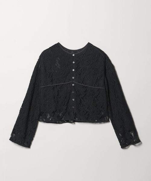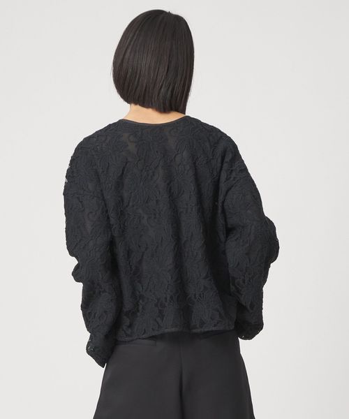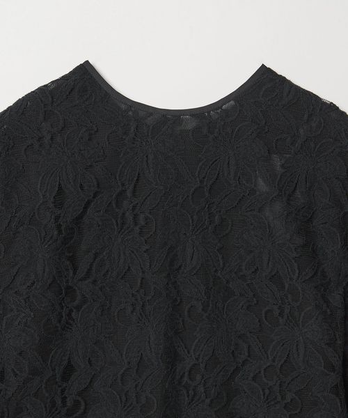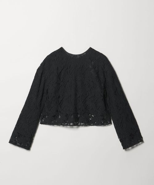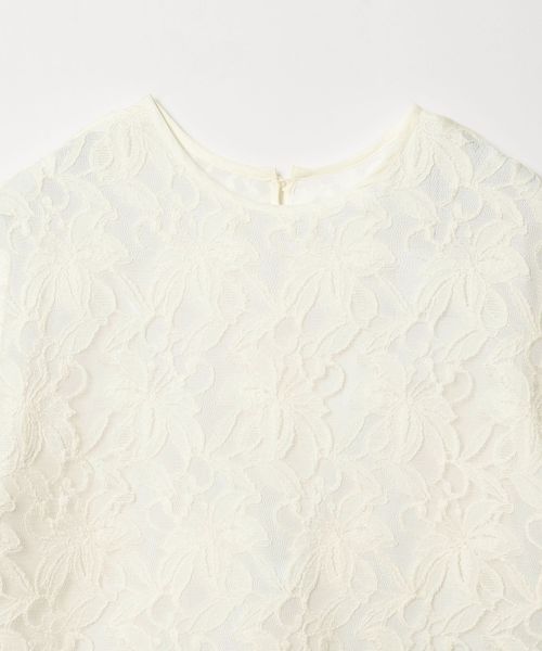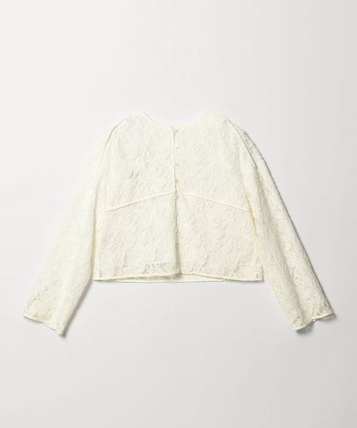 レース素材でもデイリーに着やすいよう、形はショート丈のロンT型ブラウスで仕上げています。