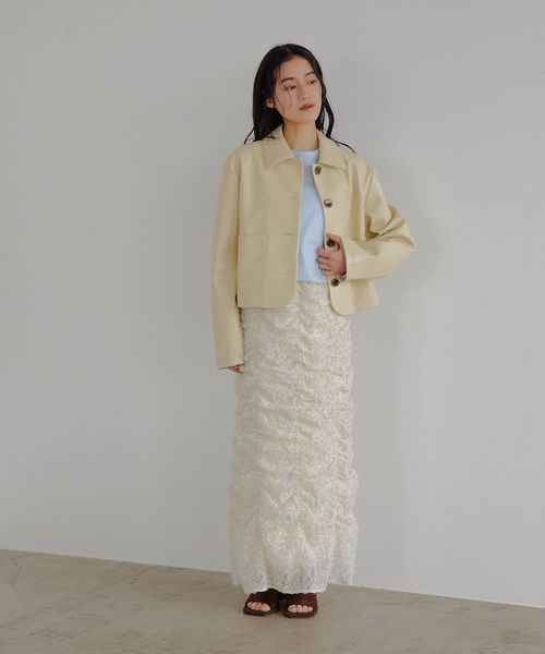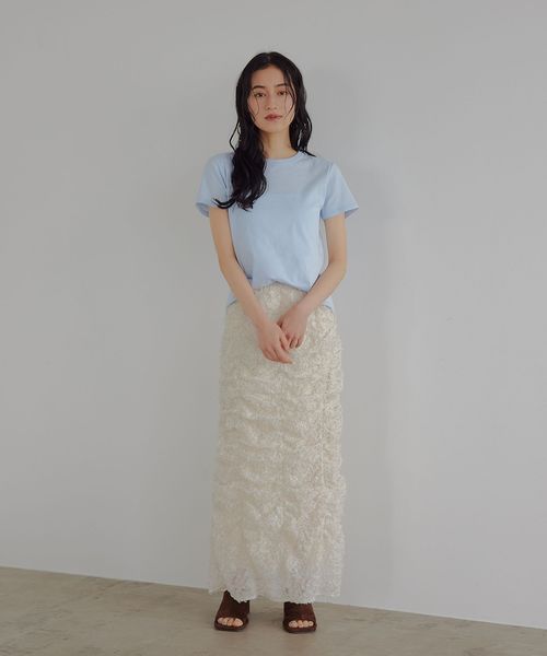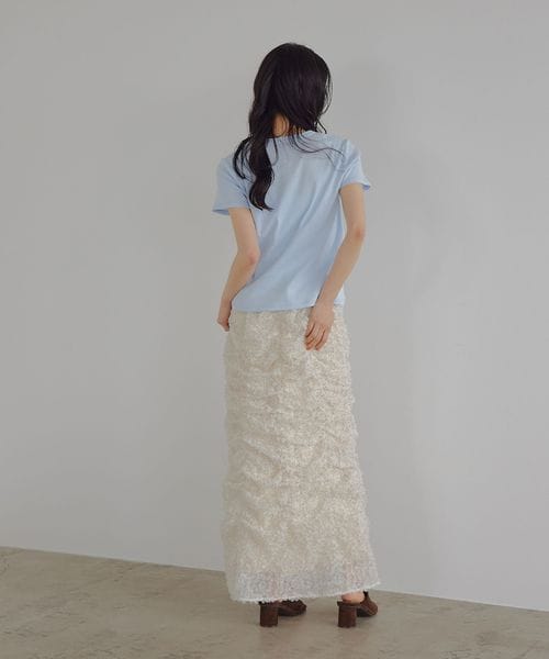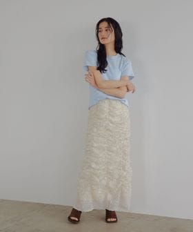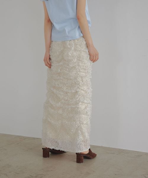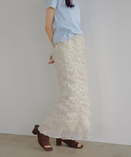 立体感のあるテープ刺しゅう素材がポイントのスカート。