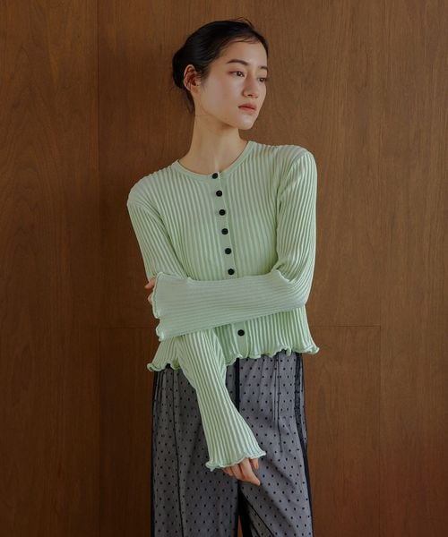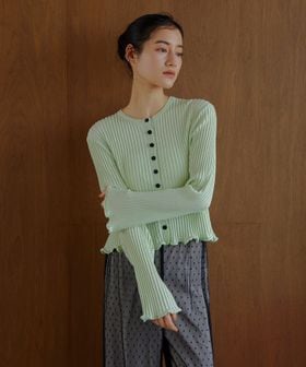 <EMMEL REFINES>EM HW リブボタン ウェーブヘム カーディガン