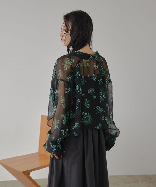 オリジナルフラワープリントのシアーシャツ
