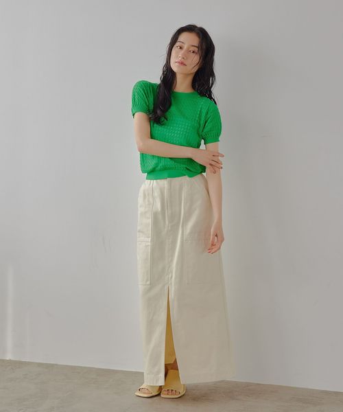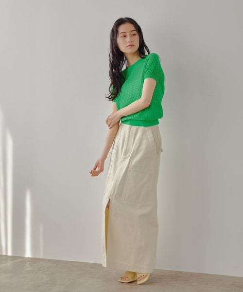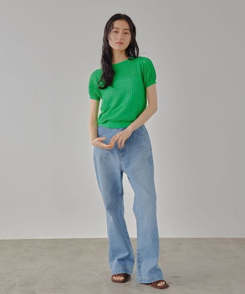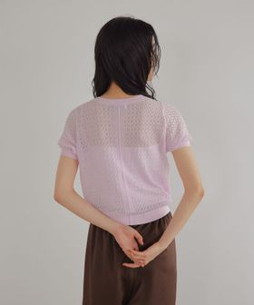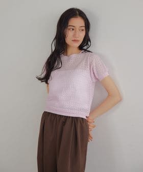 チビT感覚で着られるコンパクトな透かし編みニット。