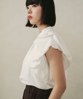 <EMMEL REFINES>EM バンドカラー パフスリーブ ブラウス