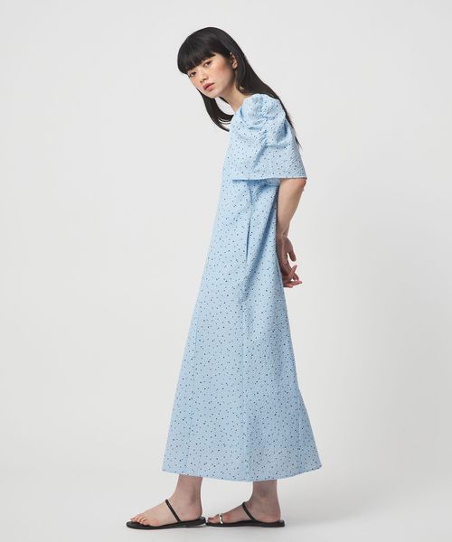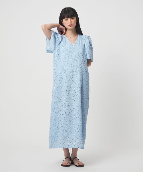 <EMMEL REFINES>EM ドットプリント タックギャザースリーブ ワンピース