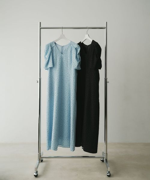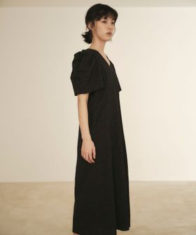 <EMMEL REFINES>EM ドットプリント タックギャザースリーブ ワンピース