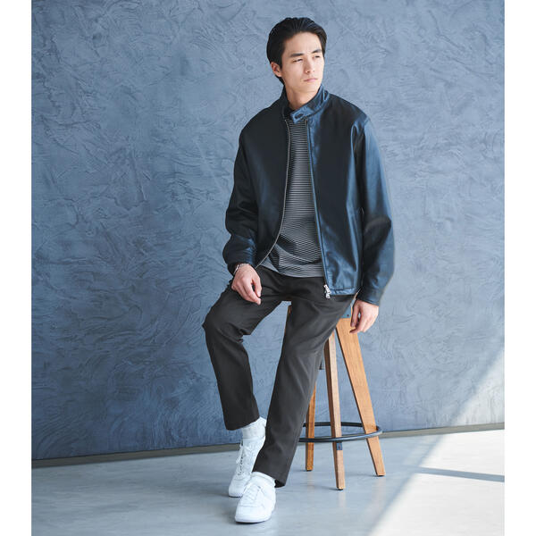 デニムにはもちろん、ウールスラックスにもおすすめな大人のレザージャケットです。