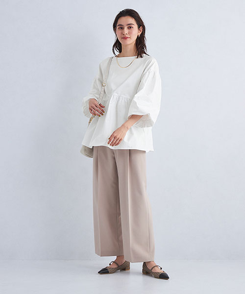 こなれ感あるワイドパンツとのバランスも新鮮です。