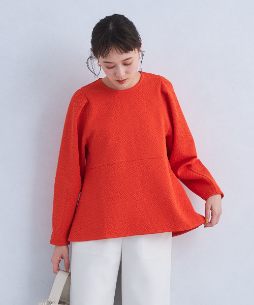 ふんわり広がるシルエットが目を惹くジャカードペプラムトップス。